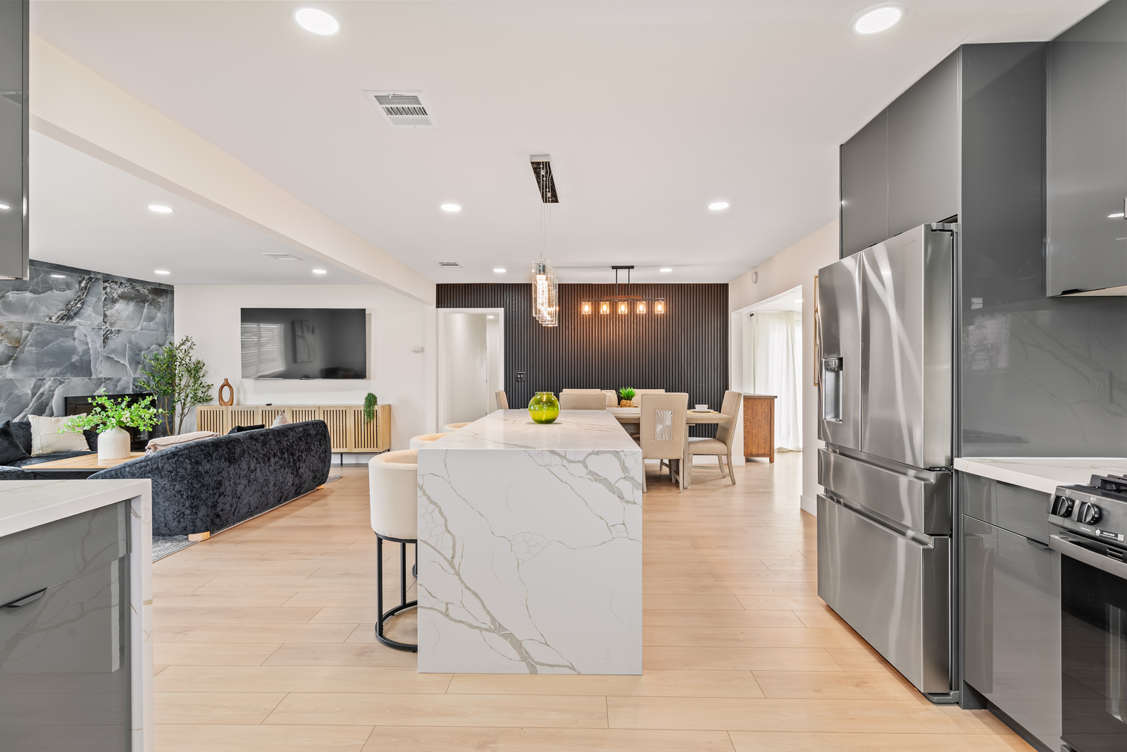 Oversized kitchen opens to dining & family rooms — ideal for entertaining